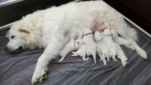 Vandaag zijn de pups één week oud, ze doen het heel goed. Duma is een hele goede moeder en beschermd haar pups goed.