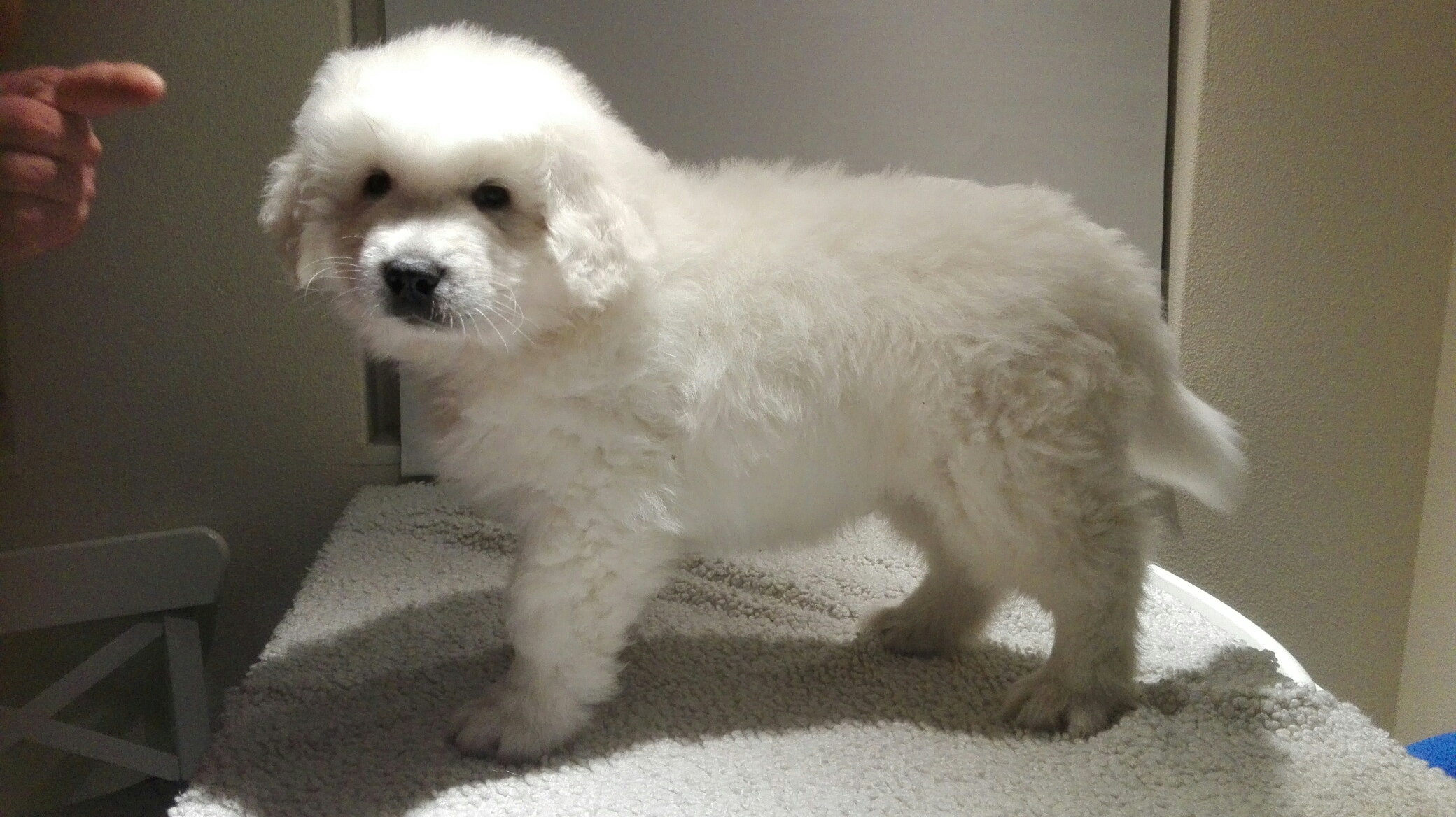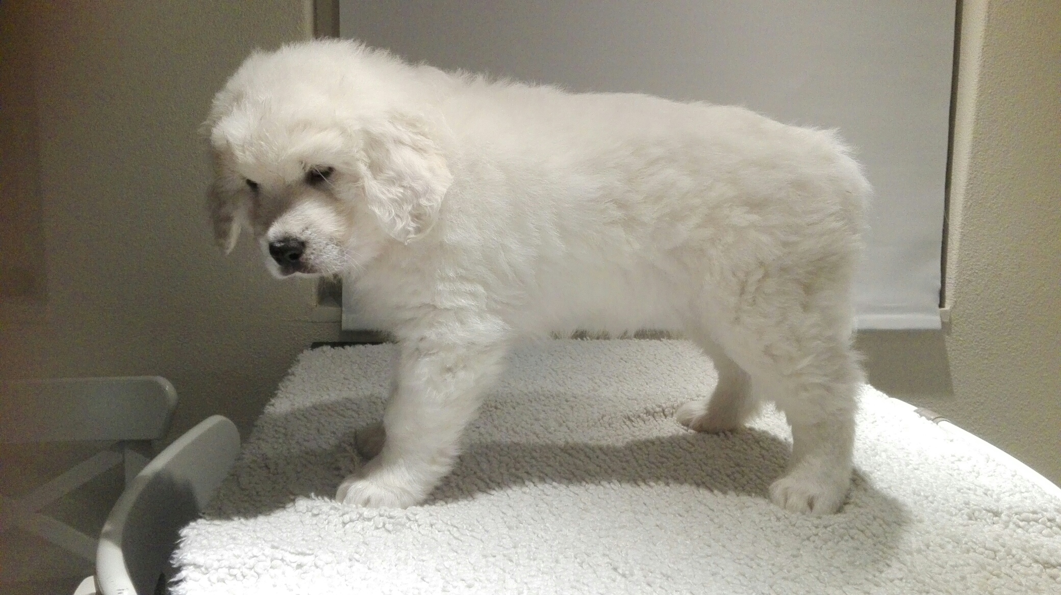 Zes weken is Duma inmiddels. We kunnen al duidelijk voelen, dat haar buik “vol”is. Ze plast veel vaker en wil niet zo heel ver meer wandelen.